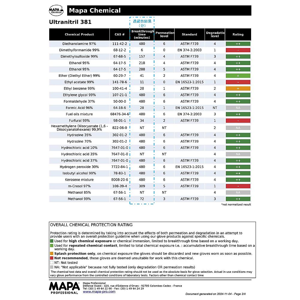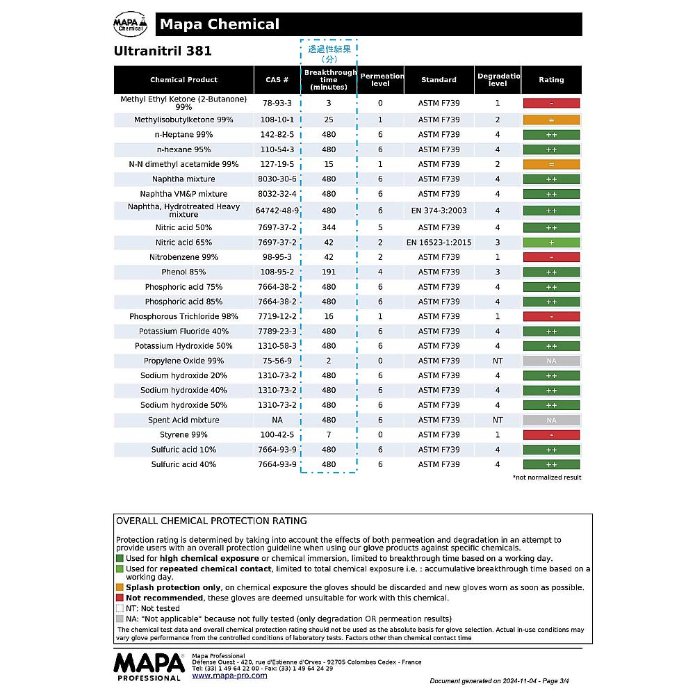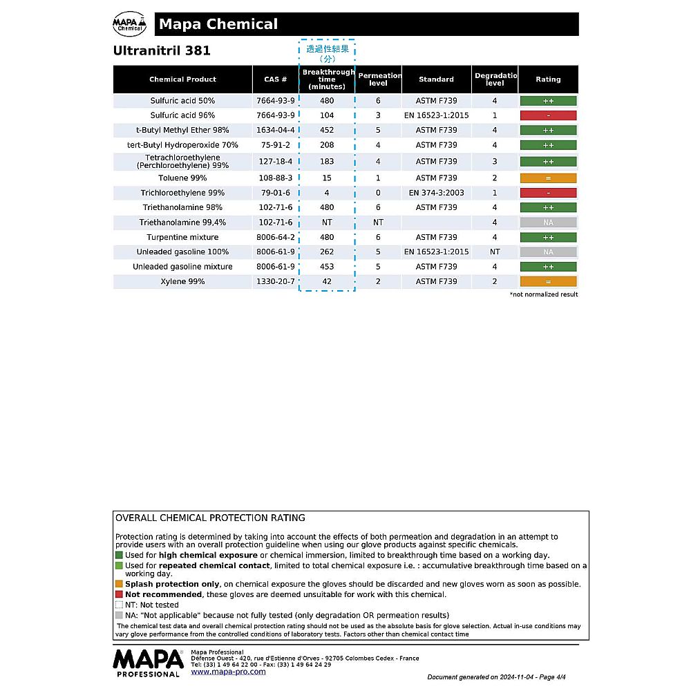 ●サイズ:XL●全長(mm):360●厚み(mm):0.95●材質:ニトリルゴム、綿(裏地)●仕様:左右別●加工:エンボス加工●規格:EN 388:2016 3111A、EN374 Type A AJKLOPT