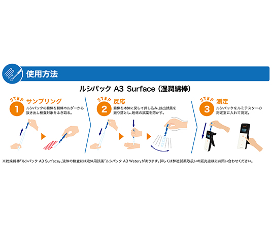 ●ルシパック A3シリーズの清掃評価用に適したルシパックです。●綿棒はあらかじめ湿潤されているため、すぐに使えます。●※ルミテスターPD-20・30・Smart専用です。●※試薬保存方法:2~8°C(凍結しないこと)