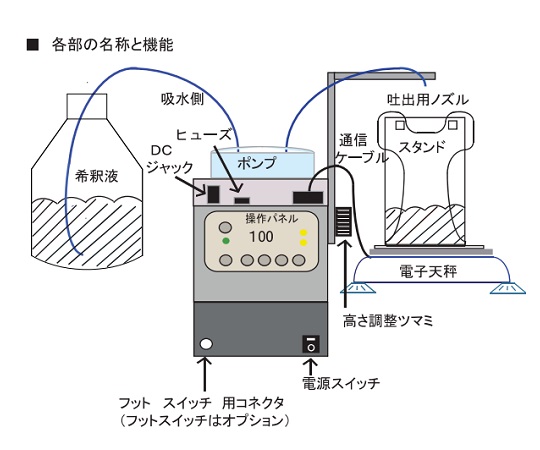 ●電子天秤とリアルタイムで通信してポンプを自動制御しますので、高精度の希釈が可能です。