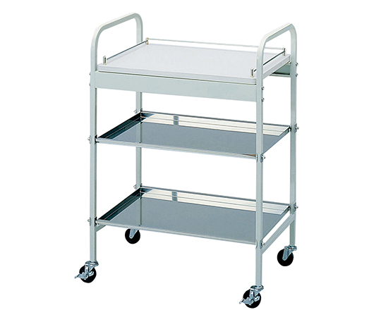 天板はユニット実験台、中段・下段は薬品や小物のトレーとして利用できます(転落防止枠付き)。