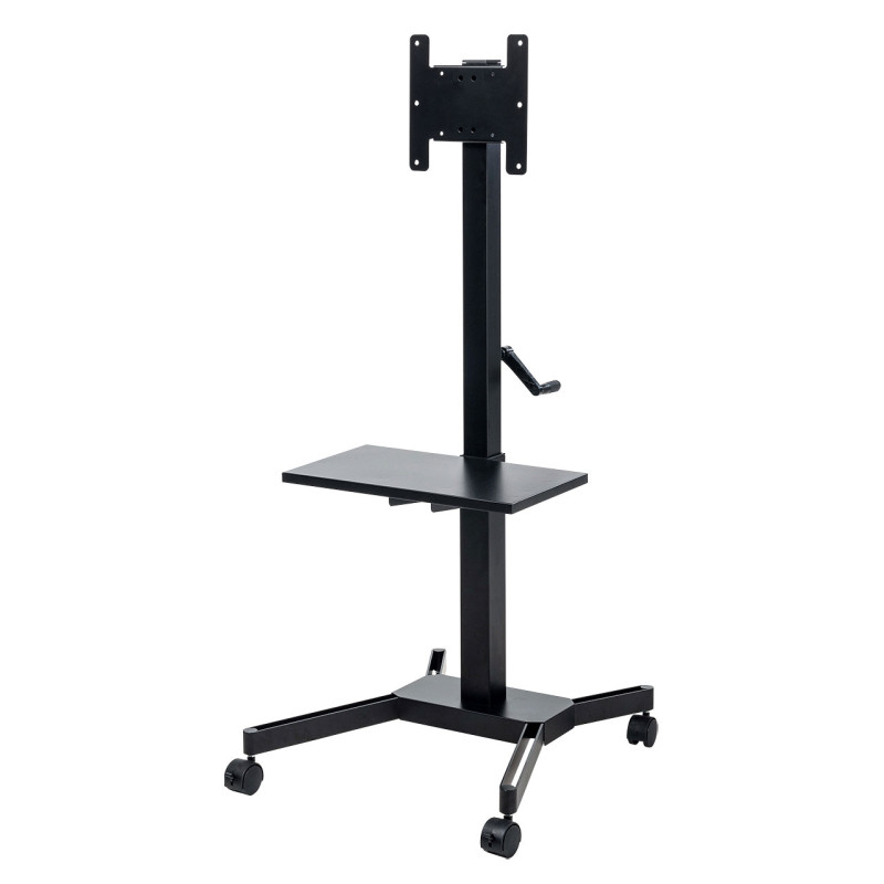 小中型ディスプレイの設置に最適。店舗什器や案内掲示など多様に使用可能な手動上下昇降ディスプレイスタンド。