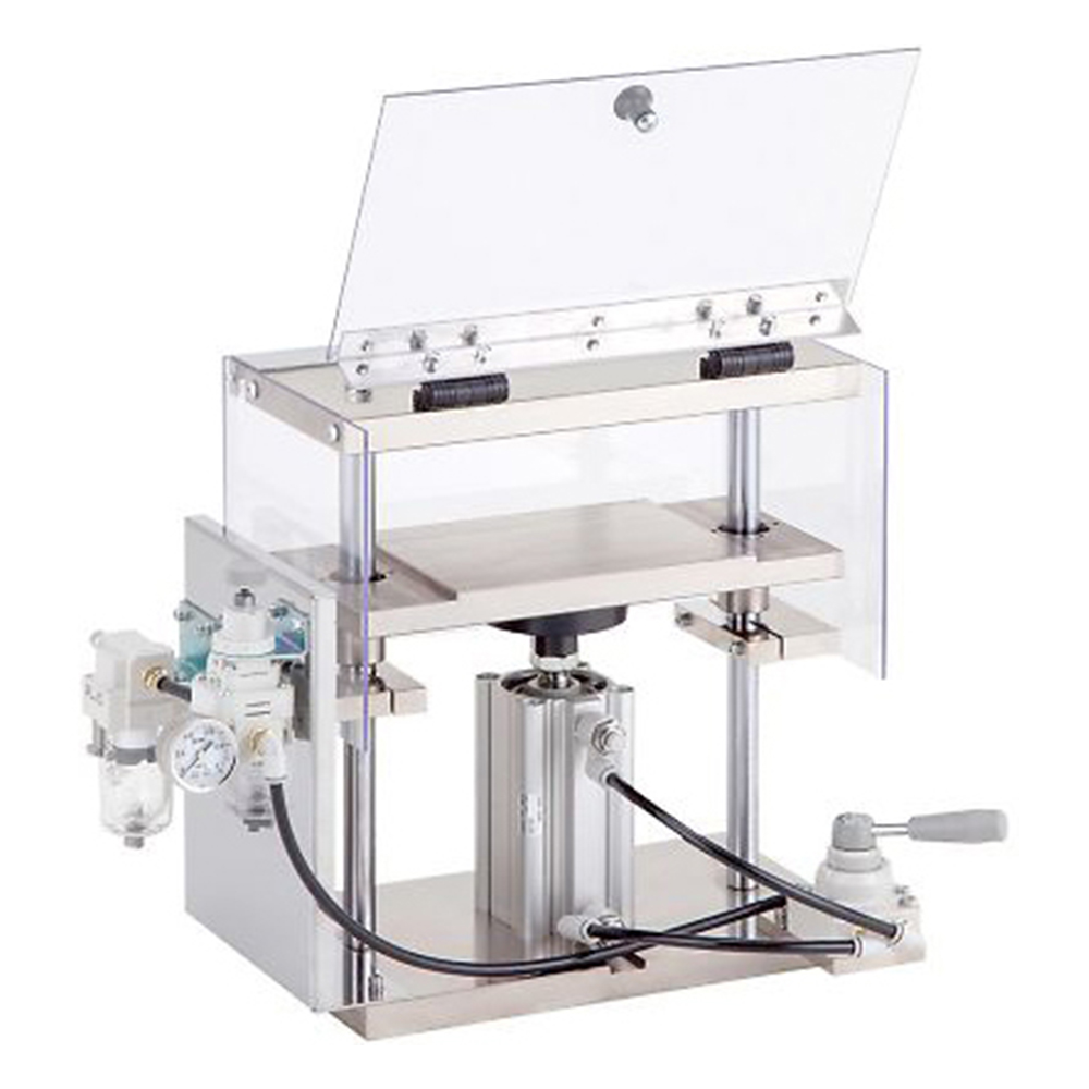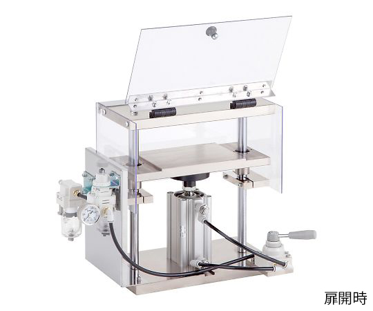 連続してワークを加圧し続ける加圧保持が可能なプレス機です。エアーコンプレッサー等(別売)の圧縮空気を利用して、エアシリンダーで加重を行います。