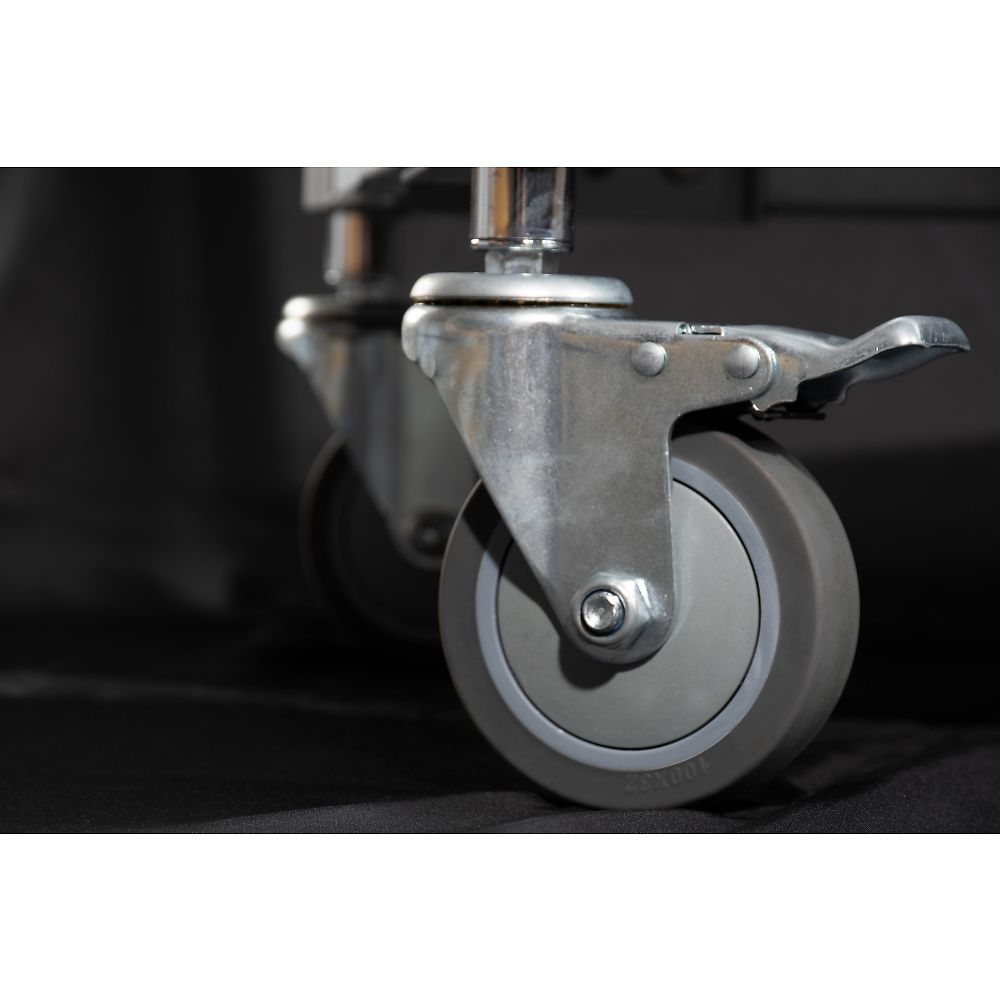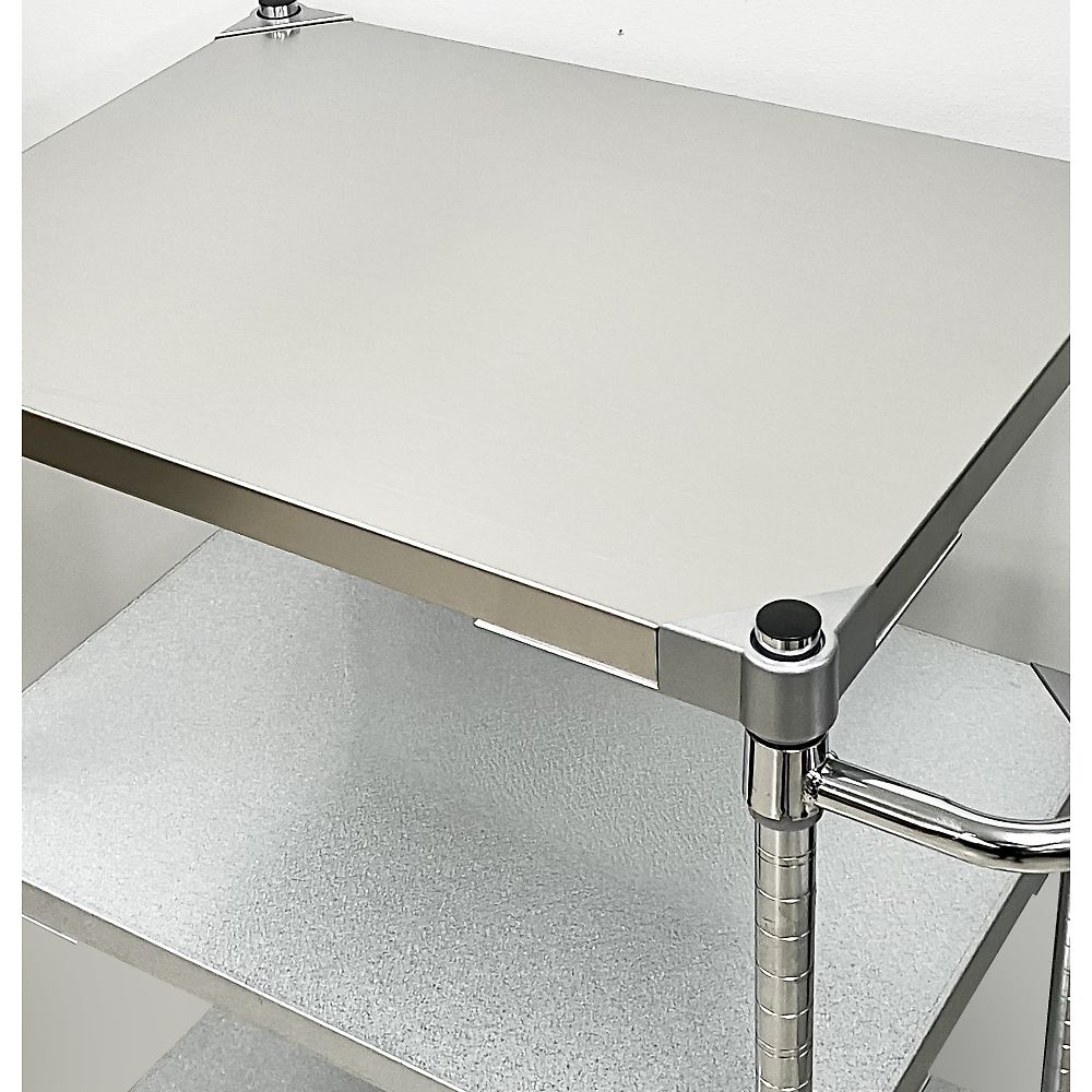 ●サイズ(mm):900×600×1150(キャスターを含めた高さ)●2段仕様●セット構成:ガルバリウム鋼板製棚板×1枚、SUS304製棚板×1枚●ハンドル・柱材質:スチール(クロムメッキ)●Φ100キャスター:スチール、ゴム