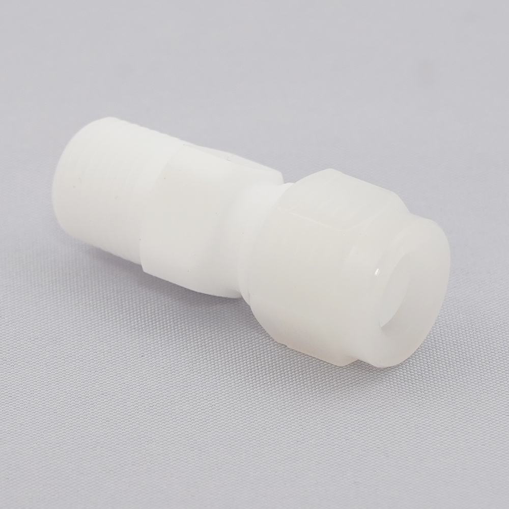 ●材質:ボディ/PTFE(フッ素樹脂)、ナット/ECTFE(フッ素樹脂)●最高使用温度:100°C●テーパ収縮シール方式●適合チューブ材質:PFA・PTFE●チューブ径:1/4インチ●ネジサイズ:R1/8