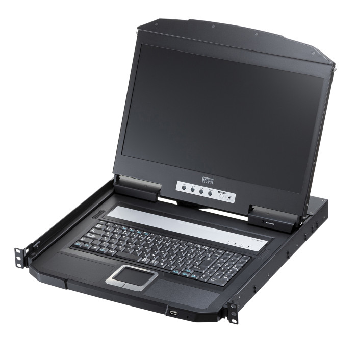 サーバーラックに収納できるモニタ・タッチパッド付キーボード一体型のLCDドロワー。KVM切替器との組み合わせにも対応し複数サーバーを切り替えて効率的に操作可能。