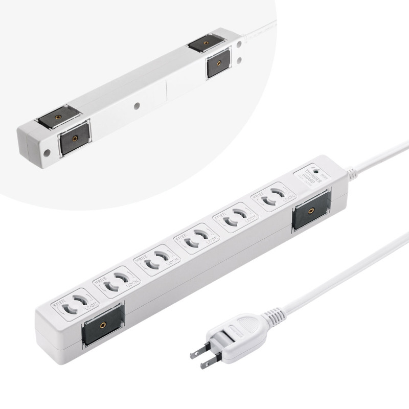 強力なマグネット4個付き雷ガード内蔵抜け止めタップ