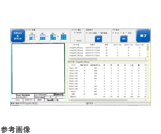 ●ダストサンプラーDSW-01またはダストサンプラーBLACK(共にダスカー50用)で採取した異物の画像データを基に、採取異物をカウント・色別する自動計測システムです。●50μm以上の採取異物を自動計測し、測定結果は50μm毎の異物個数を表示します。(最大単位:500μm以上)●異物特定の手がかりとして活用できます。