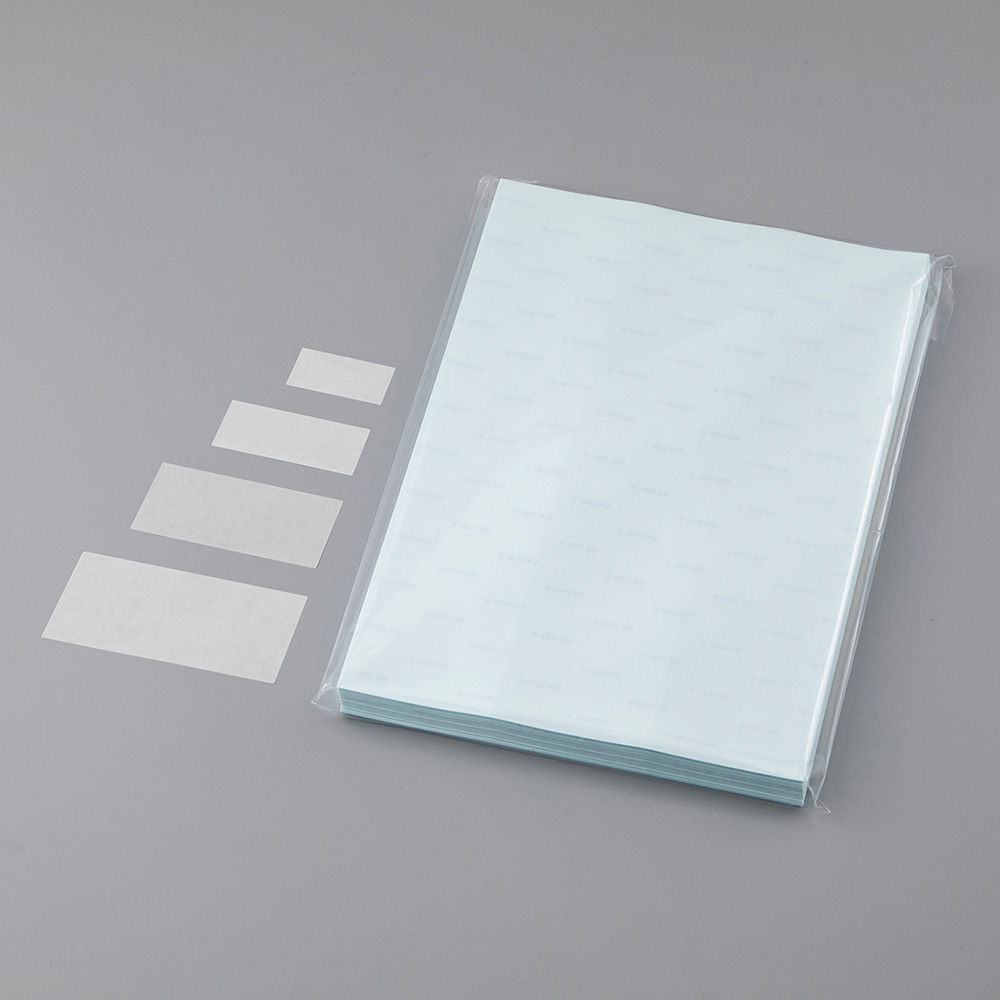 ●サイズ:A4●仕様:ノーカット●面サイズ(mm):210×297●基材:表面/無塵紙スタクリンSC64RB、粘着剤/アクリル系溶剤型(弱粘着)、剥離紙/無塵紙スタクリンSC72RB●表面基材坪量:64g/m2●シートサイズ:210×297mm