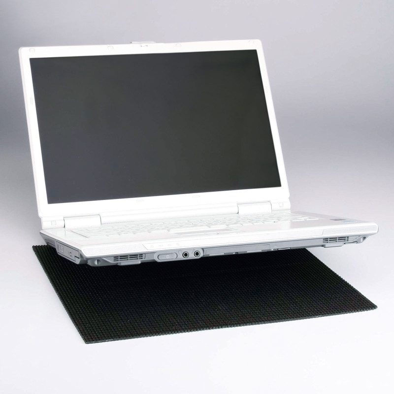 ノートパソコンの下に敷くだけで、横滑りを抑制します。
