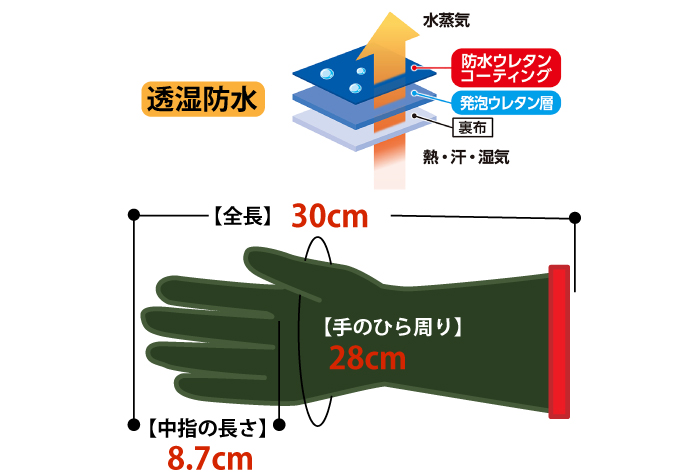 ●透湿性●防水性を兼ね備えた防寒手袋です。●-60°Cの低温下でも柔軟性を保ち、手の曲げ伸ばしがスムーズです。●テムレスRテクノロジー(透湿防水被膜)の採用により軽量化を実現。●手袋内部は柔らかいボアタイプの裏起毛により保温性を高めています。●指先、手のひら部は特殊樹脂をコーティングにより高いスベリ止め効果を発揮します。
