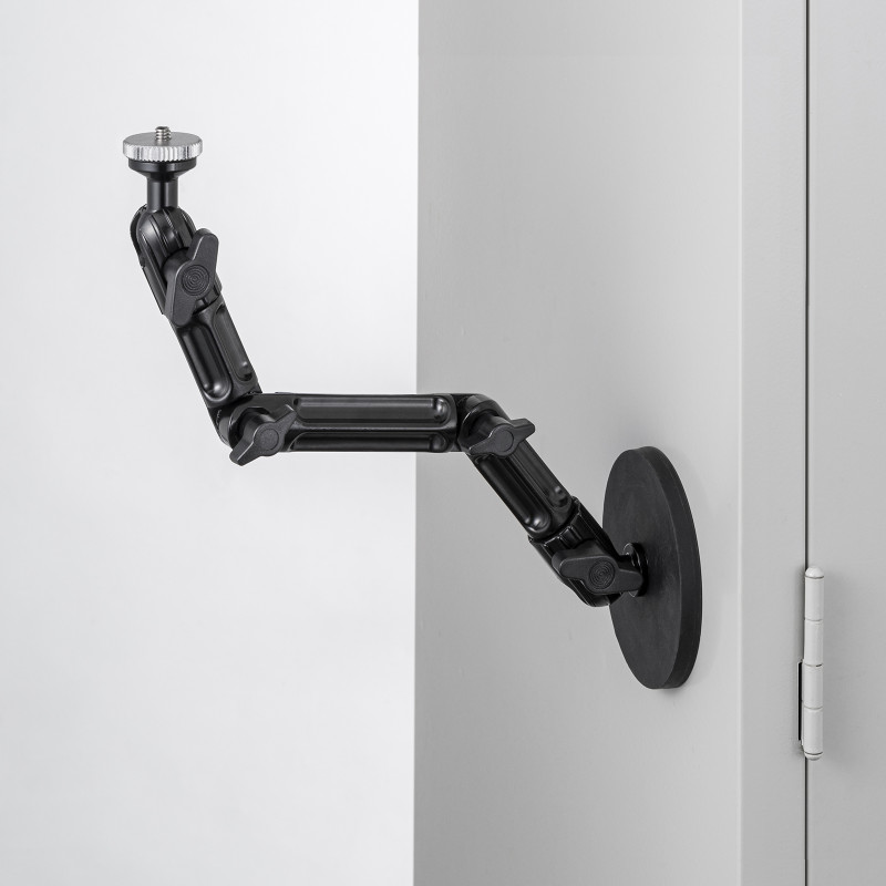 強力マグネットで支柱や壁面に取り付けできるカメラマウント。4関節タイプ。