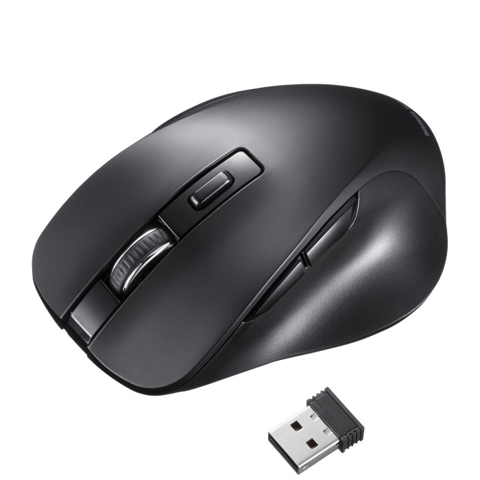 握りやすい形状で中型サイズのワイヤレスマウスです。