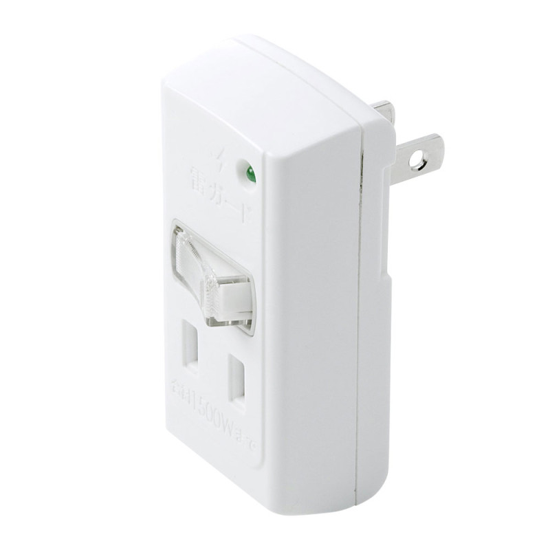 落雷による雷サージからパソコンや電化製品などを守ります。2個口スイッチ付き。