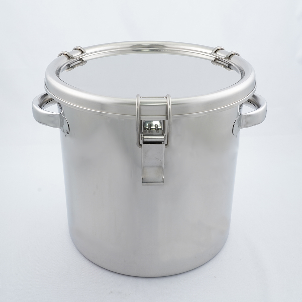 ●材質:本体・フタ/ステンレス(SUS316L)、把手・キャッチクリップ/ステンレス(SUS304)、パッキン/シリコンゴム(食品衛生法適合)●容量:10L●内径×高さ×板厚:φ240×240×0.8mm●重量:2.2kg●表面処理:内外面バフ研磨●把手タイプ・SUS316L●※継手、蛇口等の追加工、高さ変更の特注製作が可能です。●★※名入れ対応可