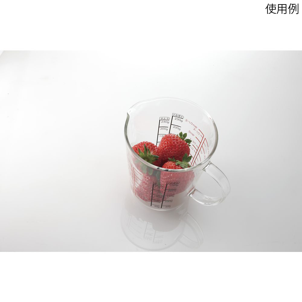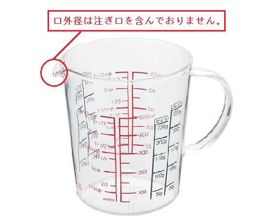 中から見える目盛り(上からのぞいた時に見やすくはっきり見える目盛り)です。液体だけでなく粉体の目盛りもついてます。