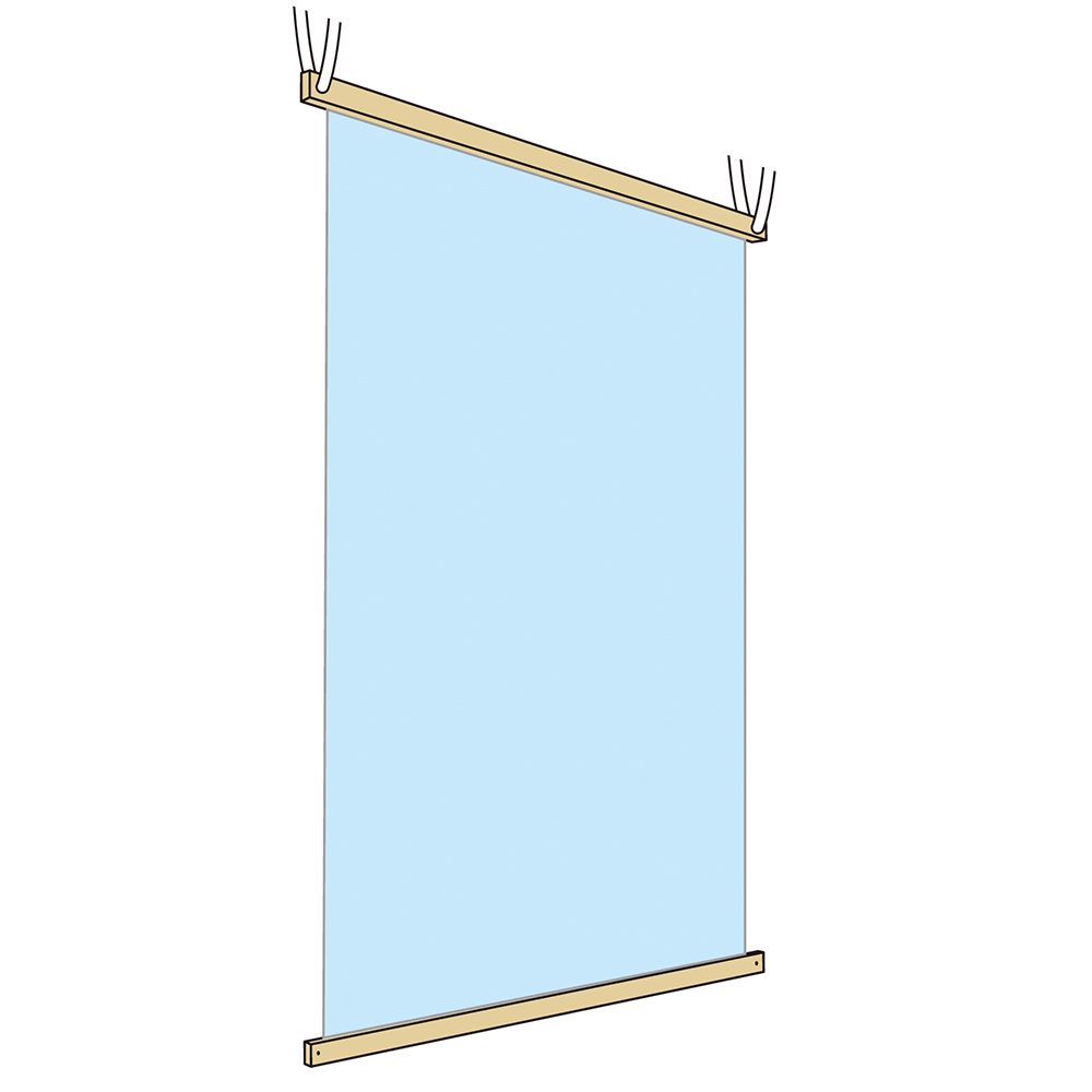 ●上下を木製バーで挟み、ひもを通すだけの簡単設置