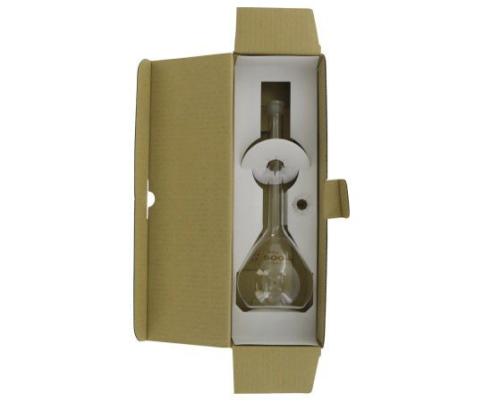 ●一定の体積を測るために用いられます。全量フラスコとも呼ばれます。●底の平らなフラスコに細長い首が伸びた形状で、首の部分に通常は1本の回線があります。●目盛のある首部分の径が細いため、同容量のメスシリンダーより目盛の精度が高いです。●一定の試薬濃度を正確に調整する時に使用されます。●目盛は受入体積(入っている体積)を表し、受用(入用)を意味するTCが表示しています。(TC:To Contain の略)目盛は20°Cの水を測定したときの体積を表します。●JIS規格(R3505)クラスAの「体積の許容誤差」より高精度です。