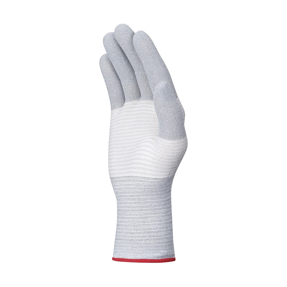 ●18ゲージ・シームレス編みにより、薄く手にフィットします。●カーボンが含まれる導電糸を採用しています。●導電性を有しているため、作業中の摩擦・接触による帯電を防ぎます。●手袋を着用したままタッチパネルを操作できます。●塗装前の金属製品などへのシリコーン含有物の転写を抑制します。●繊維製品に有害な化学物質が含まれていないことを証明するエコテックス®スタンダード100認証を取得しています。