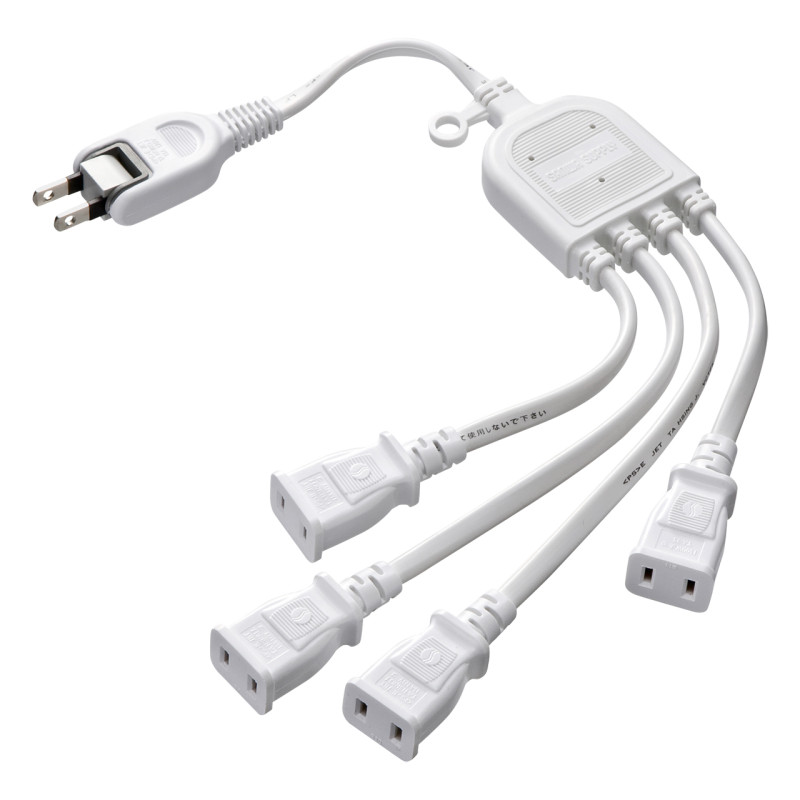 ACアダプタ使用時に無駄なく設置できる4分岐タイプの電源延長コードです。