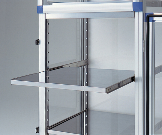 大物の重量物の保管が可能なスライド式耐荷重棚板を標準装備。