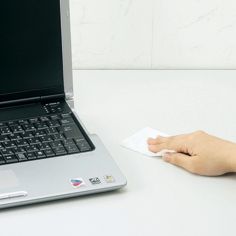 拭き取り性能の高いアクリル系超極細繊維不織布を使用しており、この不織布の特殊構造により強力な拭き取り性能を発揮します。
