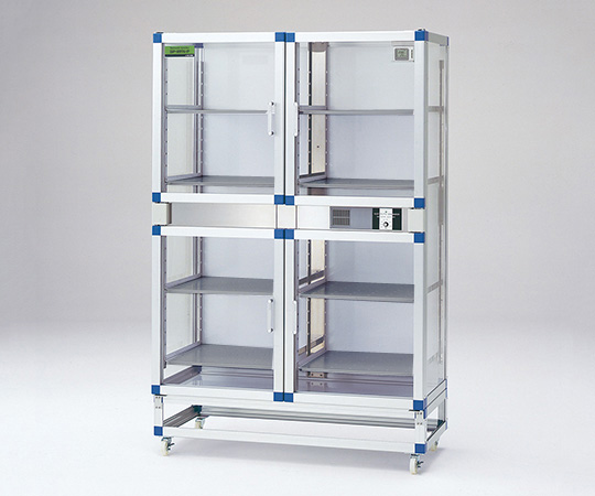 FN・PET・BG-FN・PET-BGシリーズ共通特長○1 新型扉開閉機構を採用し扉開閉時のデッドスペ ースを無くす事により、壁面に隙間無く設置できます。○2 新型除湿ユニットには駆動部が無く音や振動の発生源もありませんので、耐久性に優れています。○3 デシケーター内部の水分は直接気体状態で外部へ放出しますので、水滴(ドレン)が出ません。○4 キャスター付きで移動