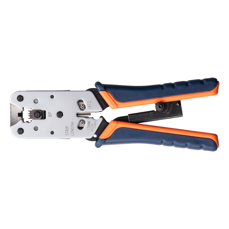 UTPケーブル加工の必需品。ラチェット付のかしめ工具。