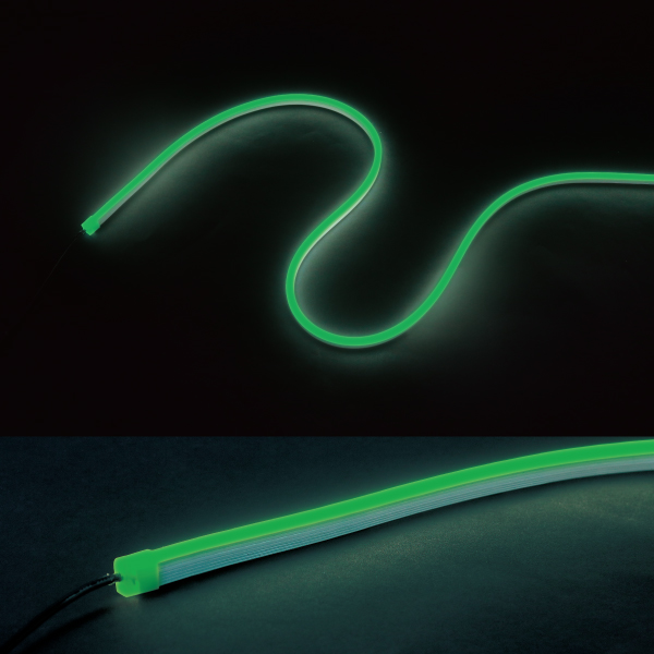 LEDフレキネオンは点灯部分の部品です。別売部品(電源、変換ケーブル)との組合せで光ります。