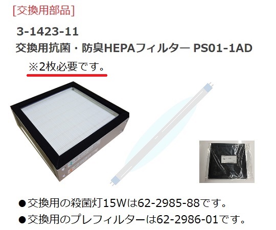 交換用HEPAフィルター/3-1424-11、交換用プレフィルター/ 62-2986-01、殺菌灯/62-2985-88、グロー球/62-2989-89