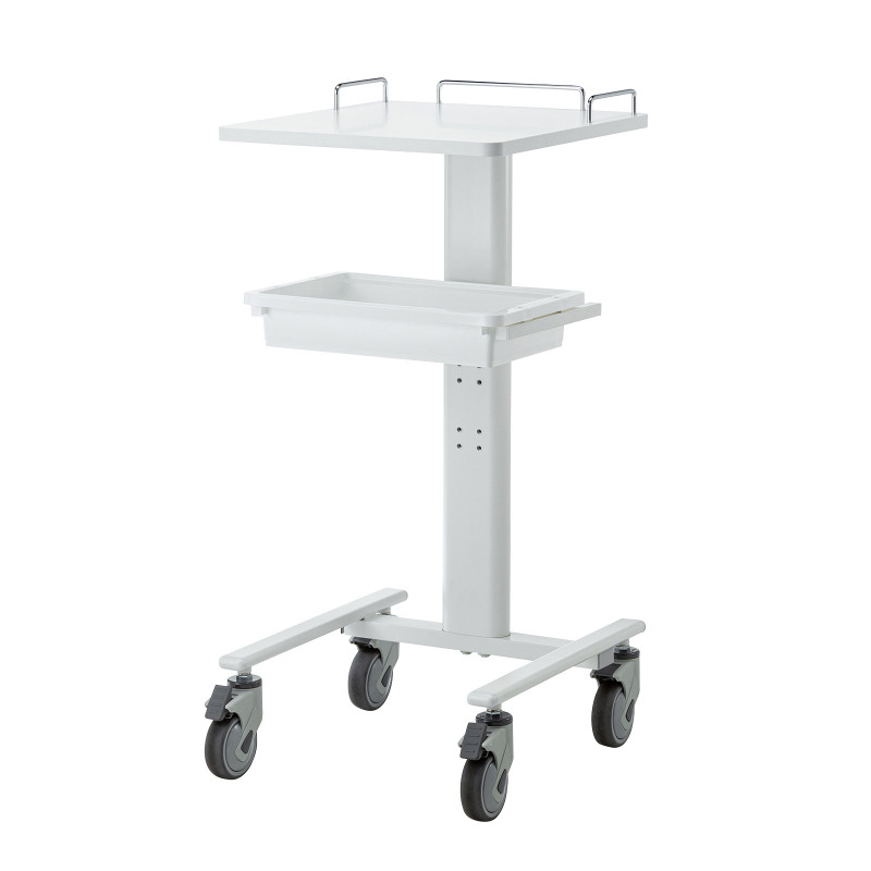 ベッド周りなどの狭い場所でも取回しがしやすい、1本支柱タイプのカートです。