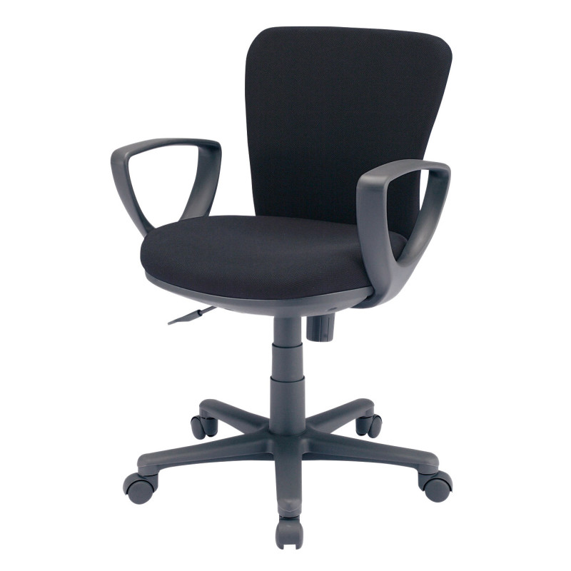 機能:座面ガス圧リフト装置、背もたれロッキング機能(固さ調整付き)、肘かけ