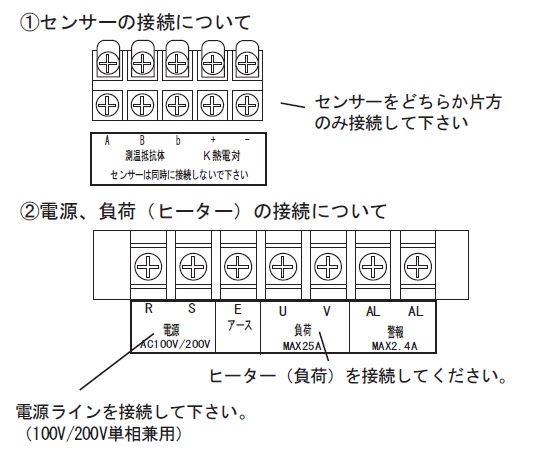 出力:制御電圧出力/AC100/200V 25A、警報接点出力/AC100/200V 2.4A