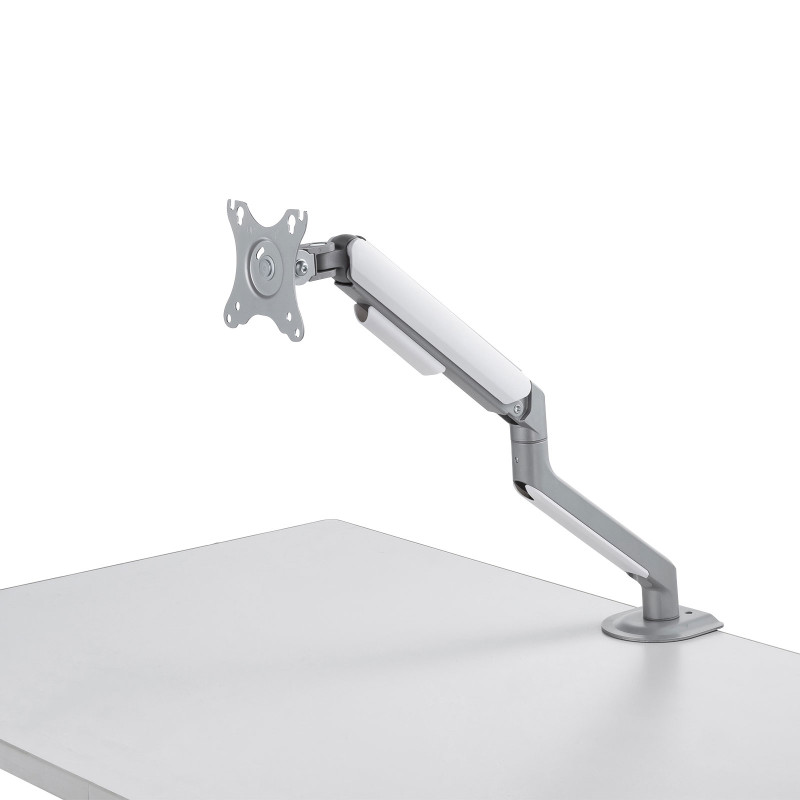 水平空間に対して大きく伸縮する3関節のスタイリッシュなモニターアームです。奥行きの広いデスクなどでの使用に最適です。