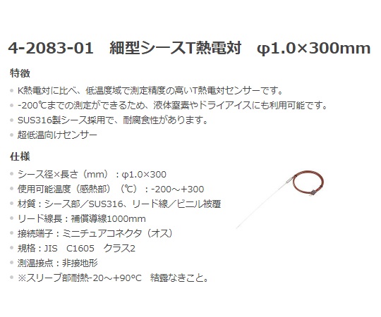 ●センサータイプ:シース型センサー(超低温)●付属センサー:Sφ1.0×3050●セット内容:熱電対ロガー(4-1721-01)、熱電対センサー(4-2083-01)各1本●※本商品は上記商品の組合せ販売となっております。仕様についてはセット一覧より個別にご確認ください。