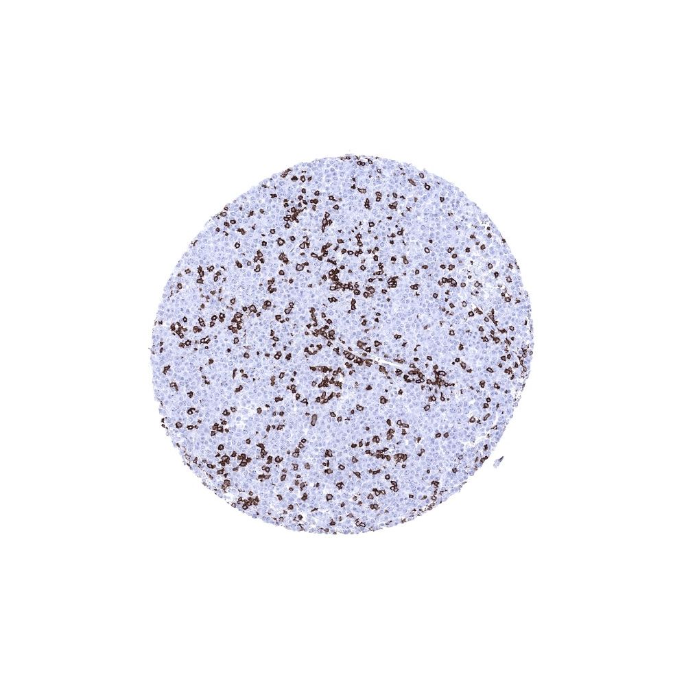 ●サイズ:0.1mL●別名:CD3 epsilon; CD3 TCR complex; T cell antigen receptor complex epsilon subunit of T3; T-cell surface antigen T3/Leu-4 epsilon chain; T-cell surface glycoprotein CD3 epsilon chain; T3E; TCRE; TiT3 complex●免疫動物:ウサギ●クローナリティ:モノクローナル●アイソタイプ:IgG●クローン名:MSVA-003R●ポジティブコントロール:扁桃腺: A moderate to strong membranous staining should be seen in all T-cells in the interfollicular T-zones and in the germinal centres (few cells).●ネガティブコントロール:扁桃腺: All epithelial structures and B-cells should not show any CD3 immunostaining.●細胞内局在:細胞表面. 細胞質●交差種:ヒト●アプリケーション:IHC(免疫組織化学)●希釈率:1:100-1:200●標識:非標識●抗原:ヒトCD3eタンパク質 (aa 20-40周辺)に一致する合成ペプチド (exact sequence is proprietary)●Swiss Prot:P07766●保管温度:2-8°C●危険有害性:毒物:アジ化ナトリウム(0.05%)を含むが規制濃度以下●本製品は研究用試薬です。診断用途、臨床検査用途にはご使用いただけません。●プロトコルについて:マニュアル染色, 自動染色(Dako, Leica, Ventana)に対応したプロトコルを準備しております。詳細はお問合せください。