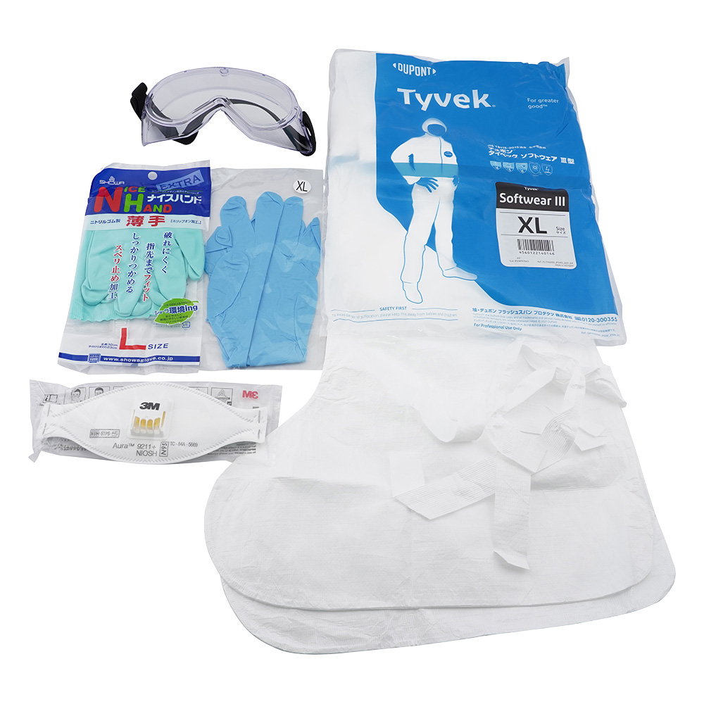 ●防護に必要な資材をひとつのセットにし、非常時などに利用しやすいパッケージになっています。