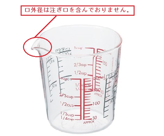 中から見える目盛り(上からのぞいた時に見やすくはっきり見える目盛り)です。液体だけでなく粉体の目盛りもついてます。