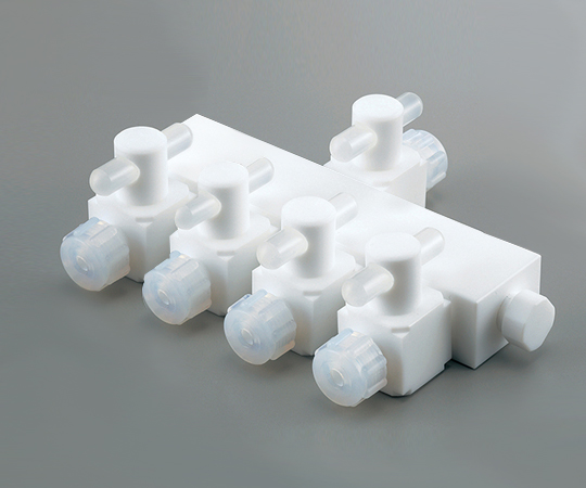 圧入型PTFEコックを接続し、それぞれ単独に流量を調整することができます。