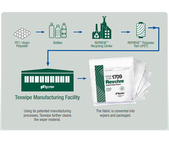 ・テックスワイプ(TEXWIPE)再生ポリエステルワイパー・リボルブ 100×100mm 未滅菌(100枚)