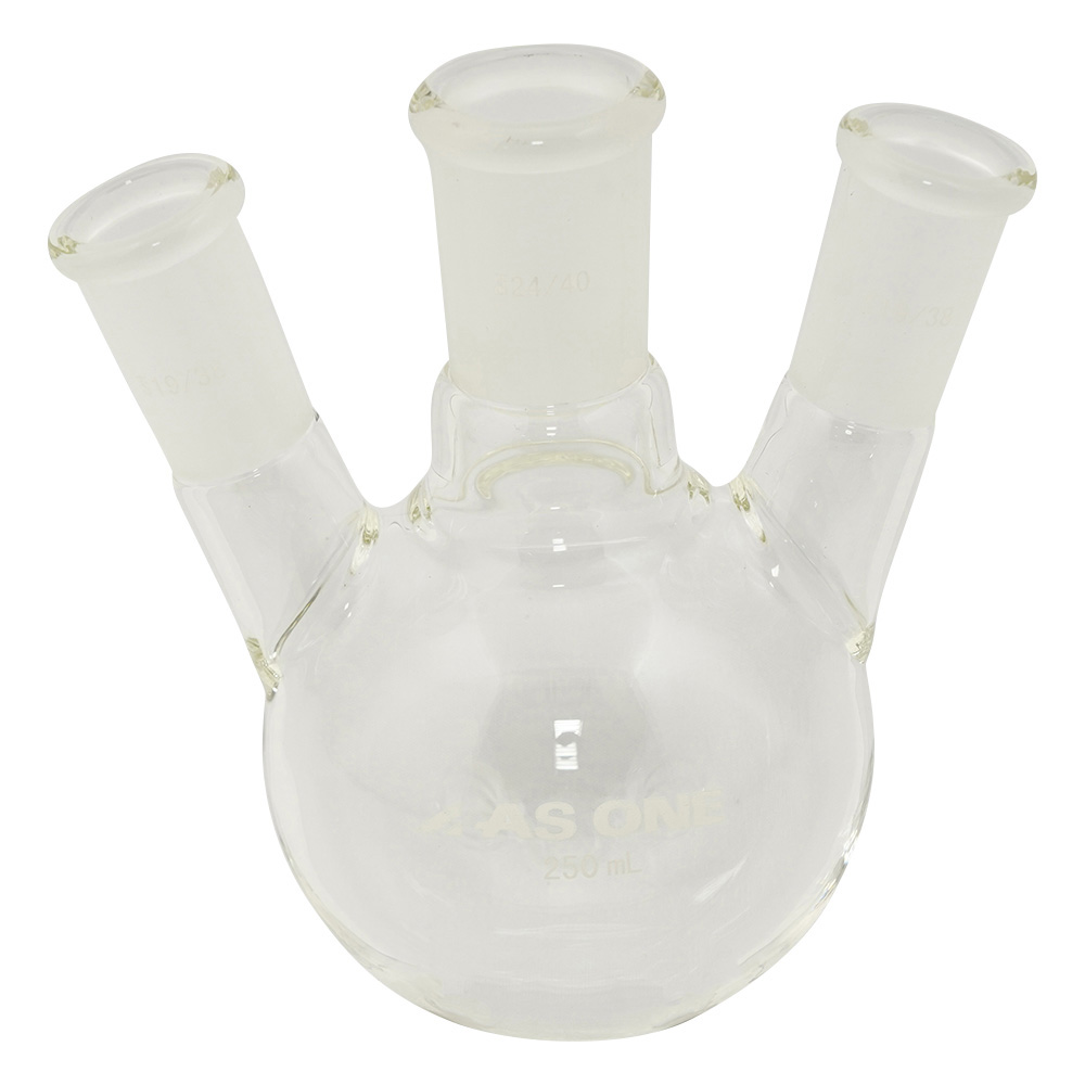 ・アズワン(AS ONE)三つ口フラスコ 250mL 側管摺合 19/38 FG3-0252440-2