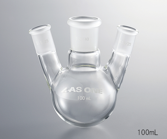 ・アズワン(AS ONE)三つ口フラスコ 100mL 側管摺合 19/38 FG3-012440-2