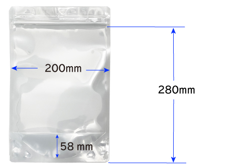 ●チャック下(mm):280●袋幅(mm):200●ガゼット幅(mm):58●基材構成:NY#15/PE0.12