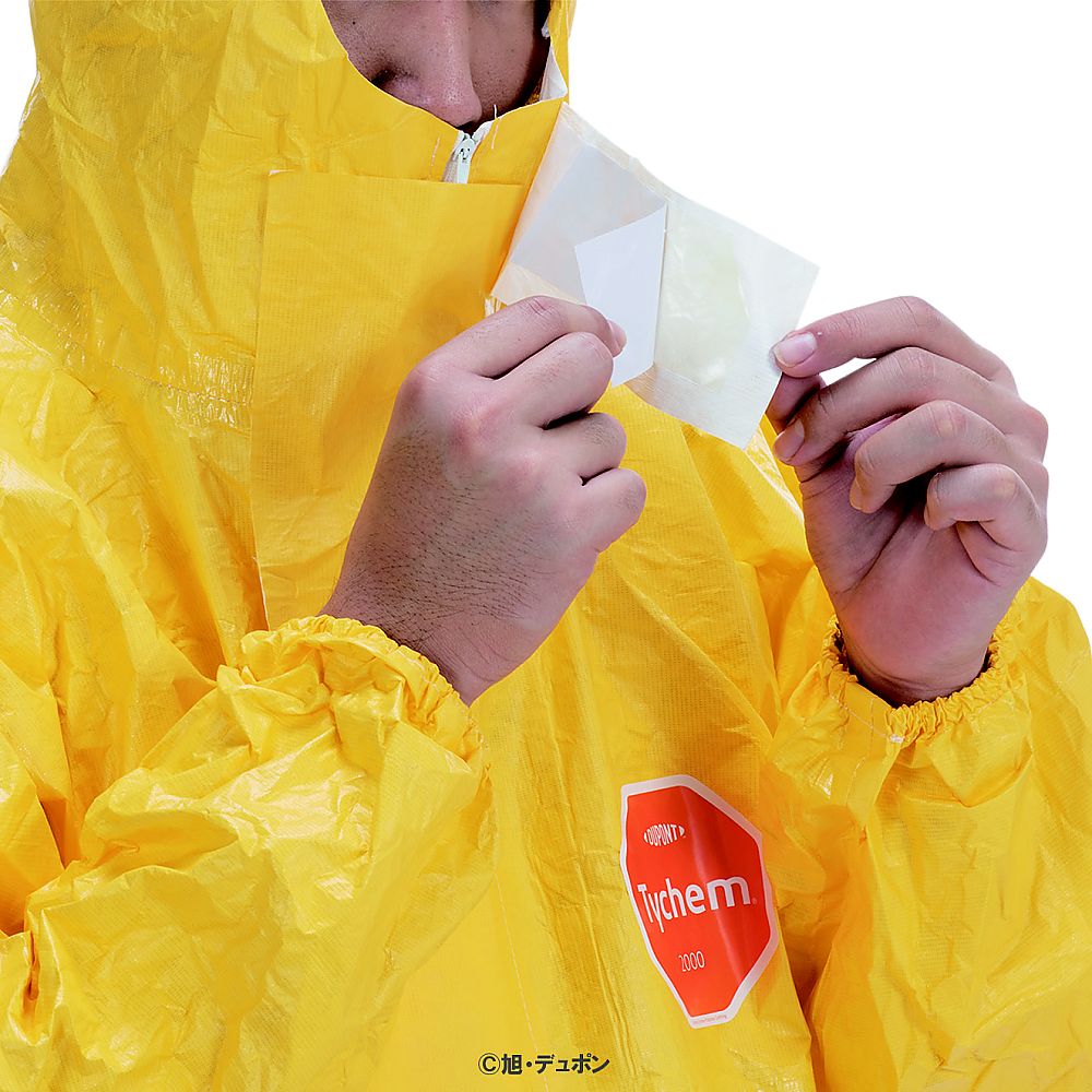 ●素材:デュポンTMタイケム®2000●商品の仕様:フードゴム入/袖口ゴム入/裾口ゴム入/背ウエストゴム入/二重に接着可能なファスナーカバー付/接着可能なあごカバー付/縫い目にテープシーム●サイズ:XXL●適応身長:186~194cm●適応胸囲:116~124cm●色:黄●使い切り●※デュポンTM、タイベック®、タイケム®は、米国デュポン社の関連会社の商標又は登録商標です。