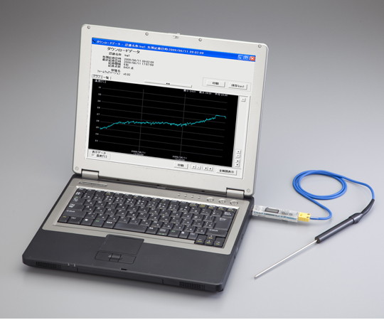コネクター式のK熱電対(別売)を挿し込み、15000点のデータ記録が可能です。